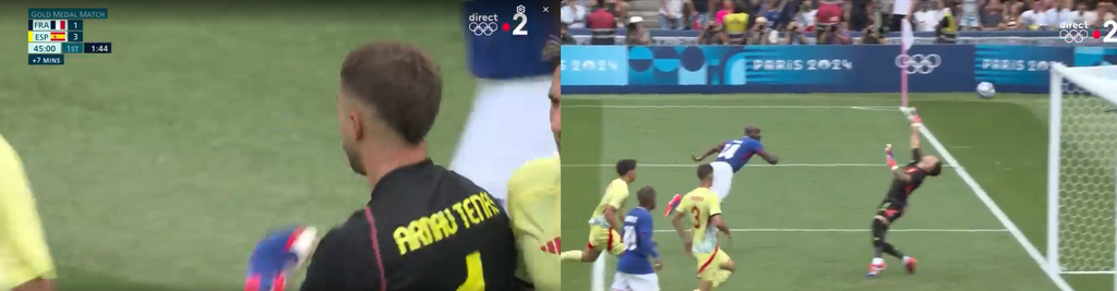 Réussite côté espagnol, avec ce deuxième but de Fermin Lopez ! Juan Miranda ajuste un centre parfait pour Abel Ruiz, qui se heurte à un arrêt de Guillaume Restes. Mais le Barcelonais a suivi et marque son doublé (1-2).