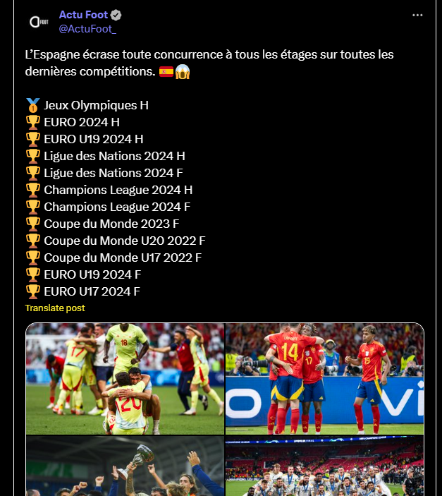 L’Espagne écrase toute concurrence à tous les étages sur toutes les dernières compétitions. 🇪🇸😱