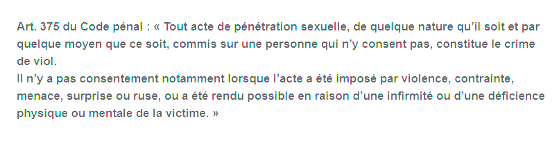 Mais effectivement, dans la loi viol et agression sexuelle ce n'est pas systématiquement pareil