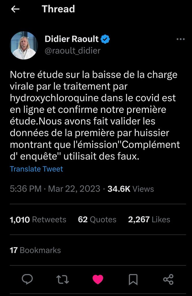 Donc ta source pour dire que Raoult avait raison c'est Raoult lui-même ? Malin ça
