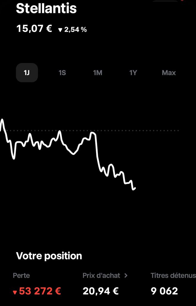 Évidemment je ne regrette pas, je sais que ça va remonter. Stellantis est en mauvaise posture, mais c'est la meilleure période pour acheter à bon prix