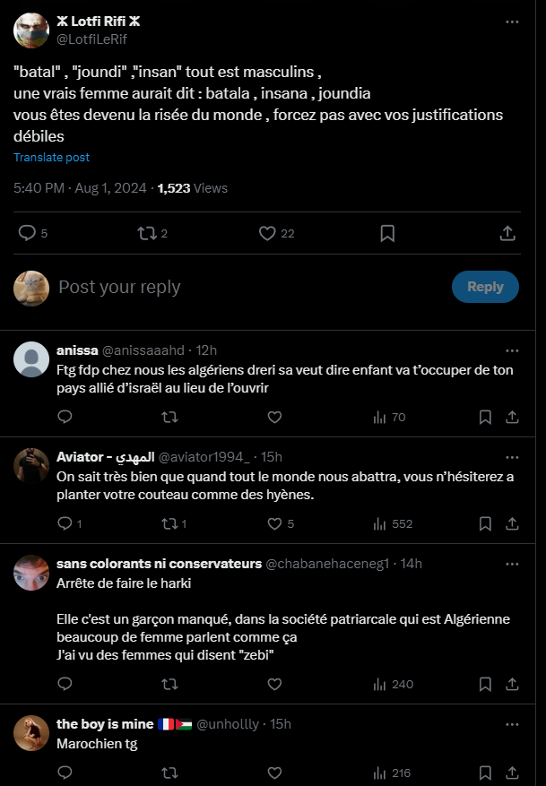 Quelques arabophones sans doute marocains dénoncent d'ailleurs le mensonge des Algériens qui exultent de rage et les insultent de "harkis" juste parce qu'ils disent la vérité et révèlent le pot aux roses destinés aux mécréants non arabophones.