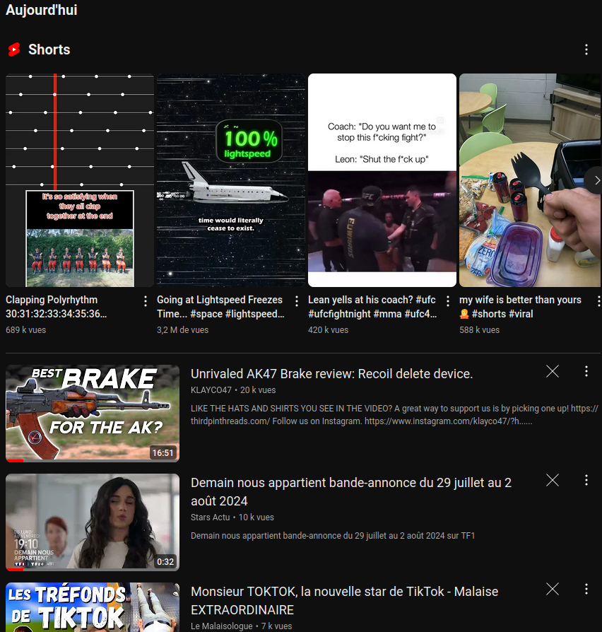 Youtube mais je like rarement, j'écoute surtout de la musique avec
