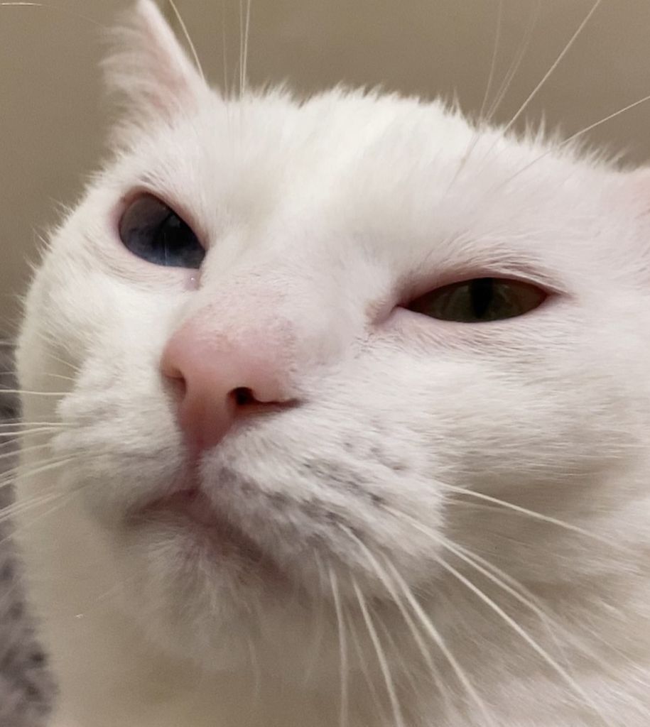 Je sais pas si c'est un strabisme que tu as ou juste la photo qui fait ça mais essaye de voir éventuellement s'il est possible de le corriger
