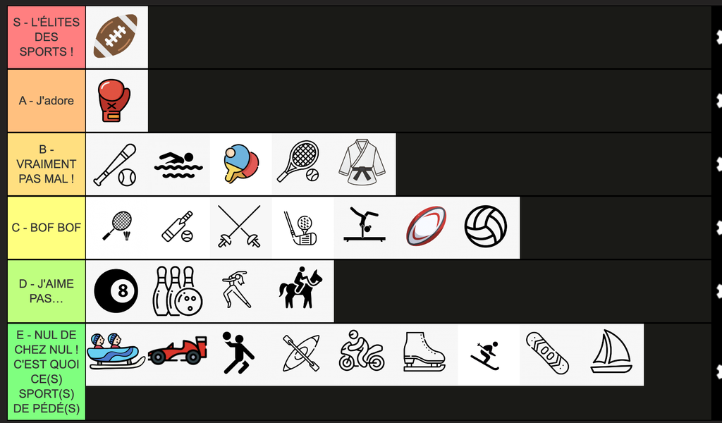 Je parle des sports collectifs avec du contact, me cassez pas les burnes avec des sports co sans oppositions ou individuels