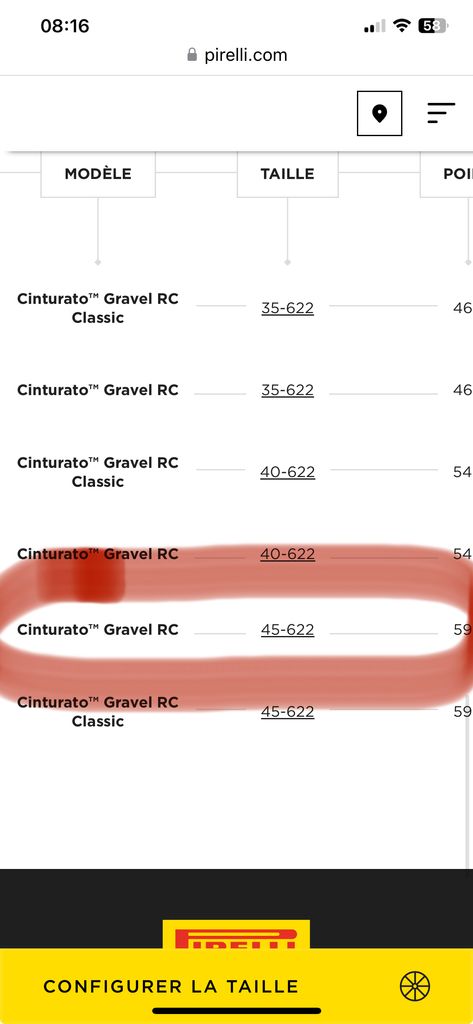 Suffit ensuite d’ acheter avec ses références comme ici ou j’ ai bien du 45x622 de possible