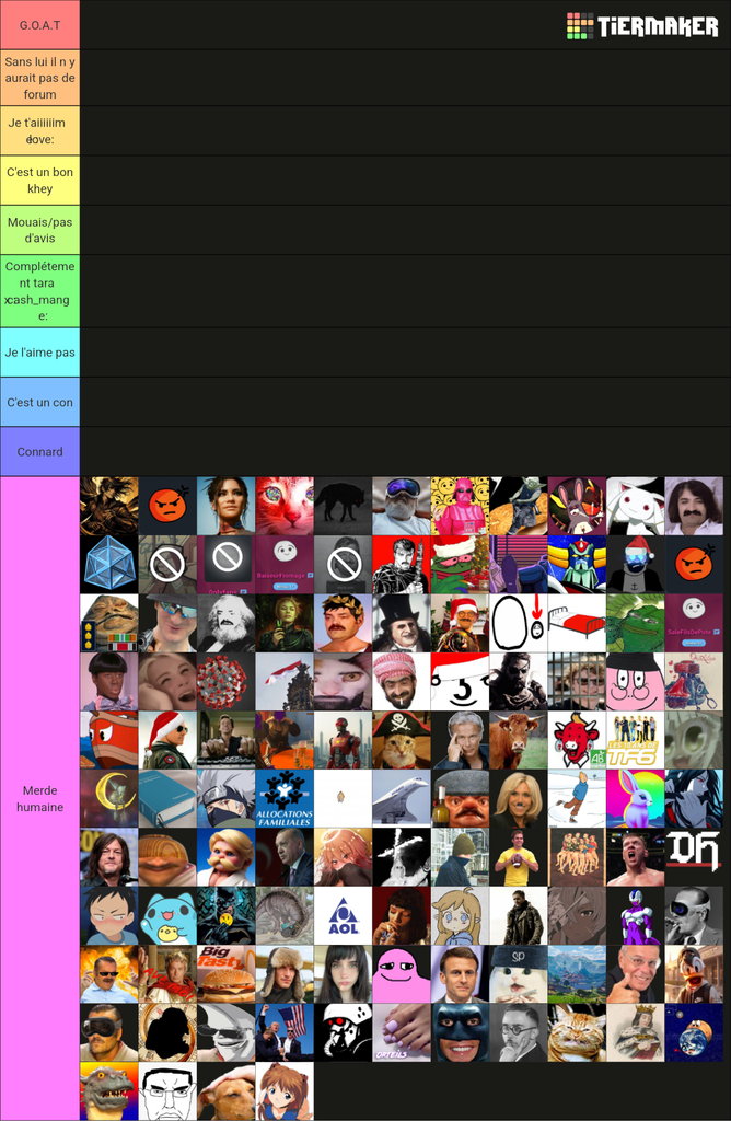 Si t'avais été sur la Tierlist jamais j'aurais mis que t'étais une "merde humaine" même si tu m'es antipathique d'ailleurs je ne suis pas à l'aise avec le concept de tierlist.