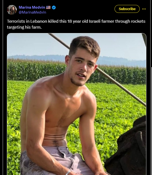 Des terroristes au Liban ont tué ce fermier israélien de 18 ans grâce à des roquettes visant sa ferme.