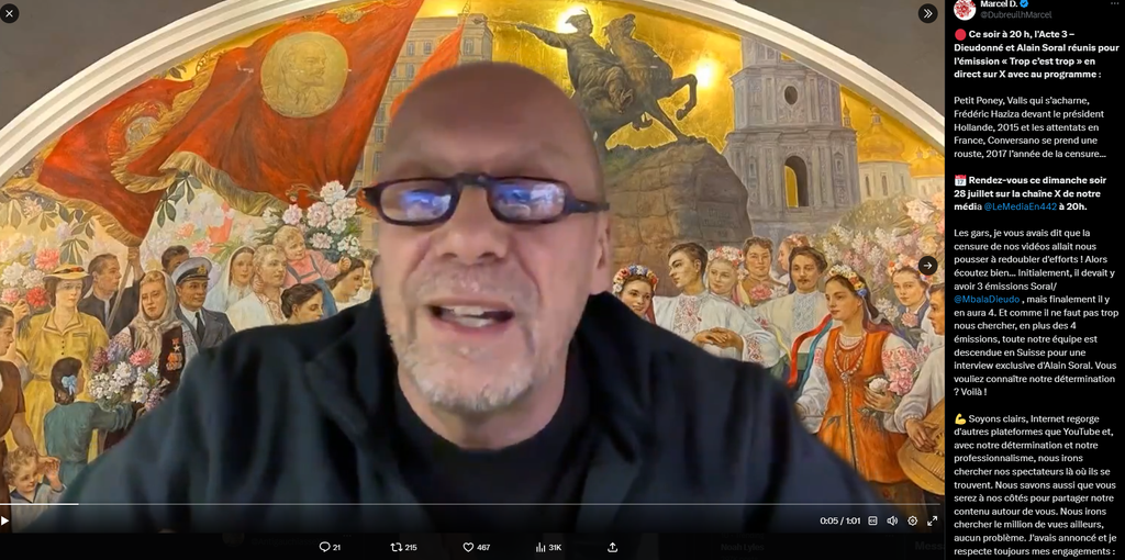Sinon des nouvelles de papy Soral qui met des fresques bolchéviques en arrière plan pendant ses lives avec le tiermsondiste anti-raciste Dieudonné qui fait une promotion capitaliste sur la vente de petits poneys... Tout un programme...
