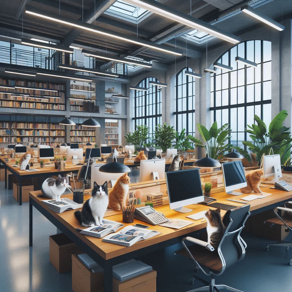Nous comptons une 15aines d'employés félins : comité de lecture, graphiste, siesteur, responsable des droits, tueur de souris, responsable marketing, attaché de presse, chasseur du point rouge lumineux, responsable de distribution etc.