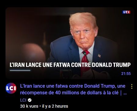 L'Iran lance une fatwa contre Donald Trump, une récompense de 40 millions de dollars à la clé|LCI