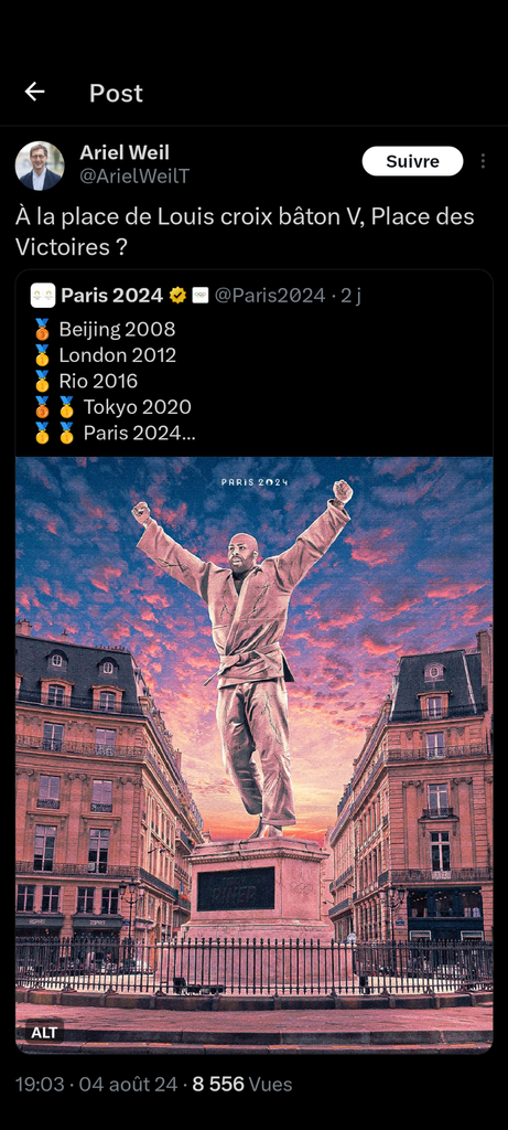 Qu'il fasse une statue de l'Abbé Pierre ou de Marie Curie ok pourquoi pas mais Teddy Riner.....