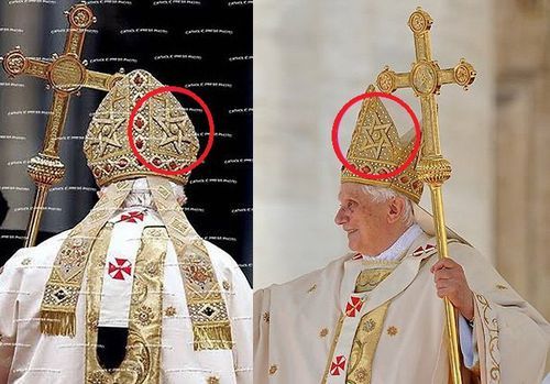 Jolie croix chrétienne sur le mître du pap-...ah non c'est le tabernacle de Remphan