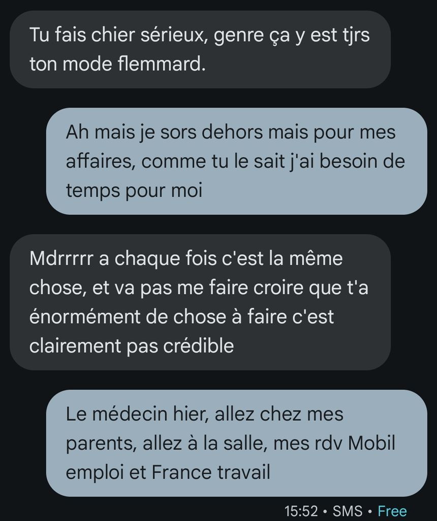En ce moment elle me supplie à genoux quitte a mentir et utiliser ma culpabilité pour me faire plier