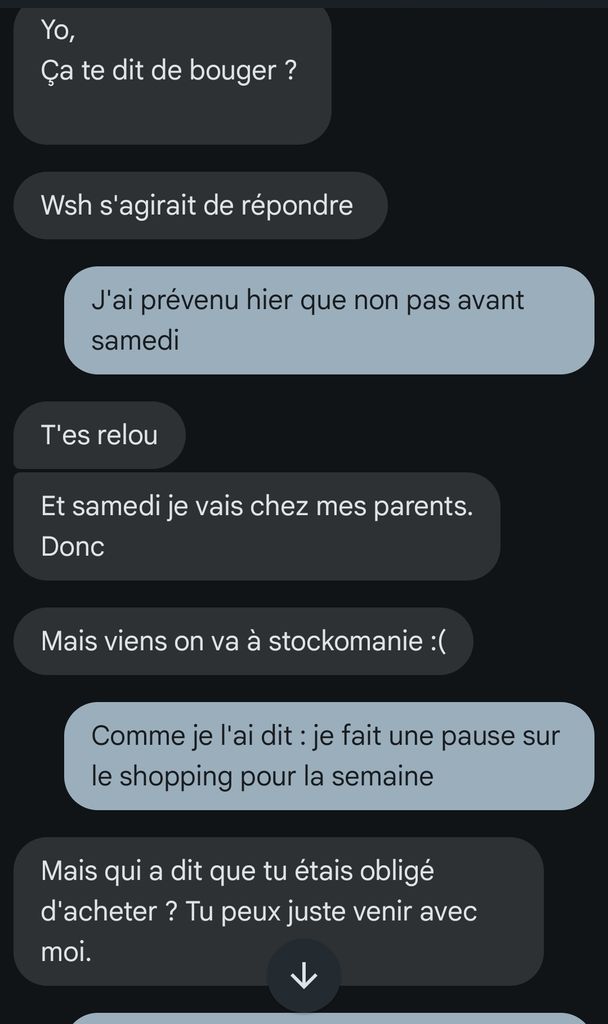Tout ça piur faire du shopping toute la journée faire des dizaines d'aller retour en bus car elle a pas de voiture
