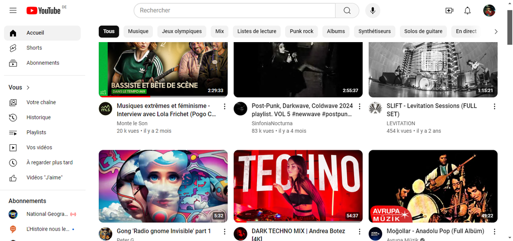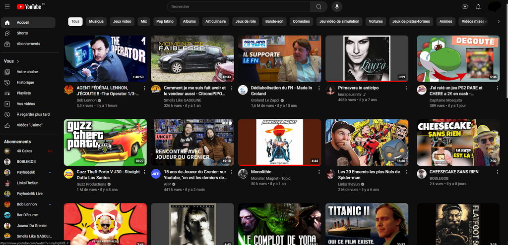 Screenez votre page d'accueil Youtube