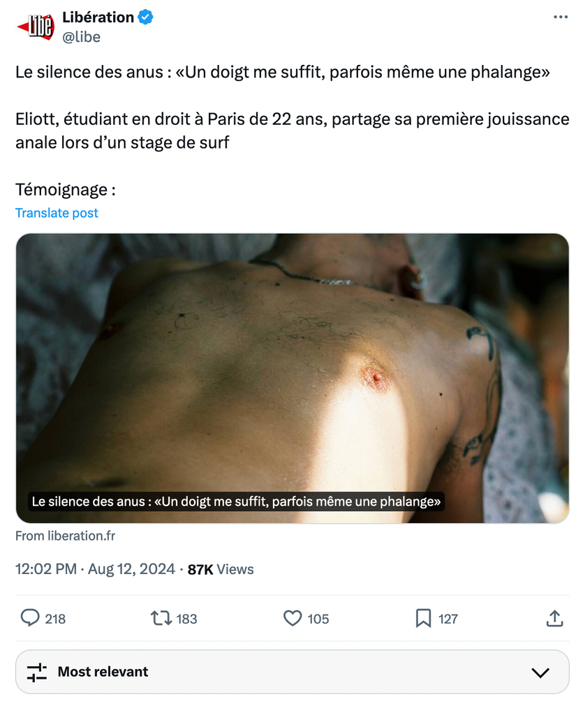 Libération très porté sur l'anus