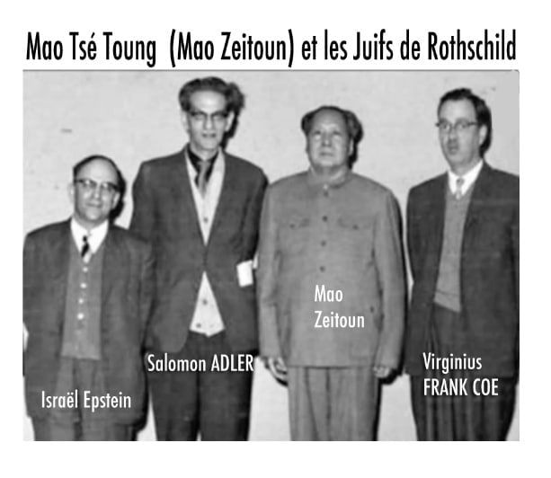 Tout comme le communisme en Russie, la Chine communiste a été créée par les Rothschild et leurs agents. Le 1er octobre 1949, Mao Tsé Toung a proclamé la fondation de la République populaire de Chine sur la place Tiananmen, à Beijing.