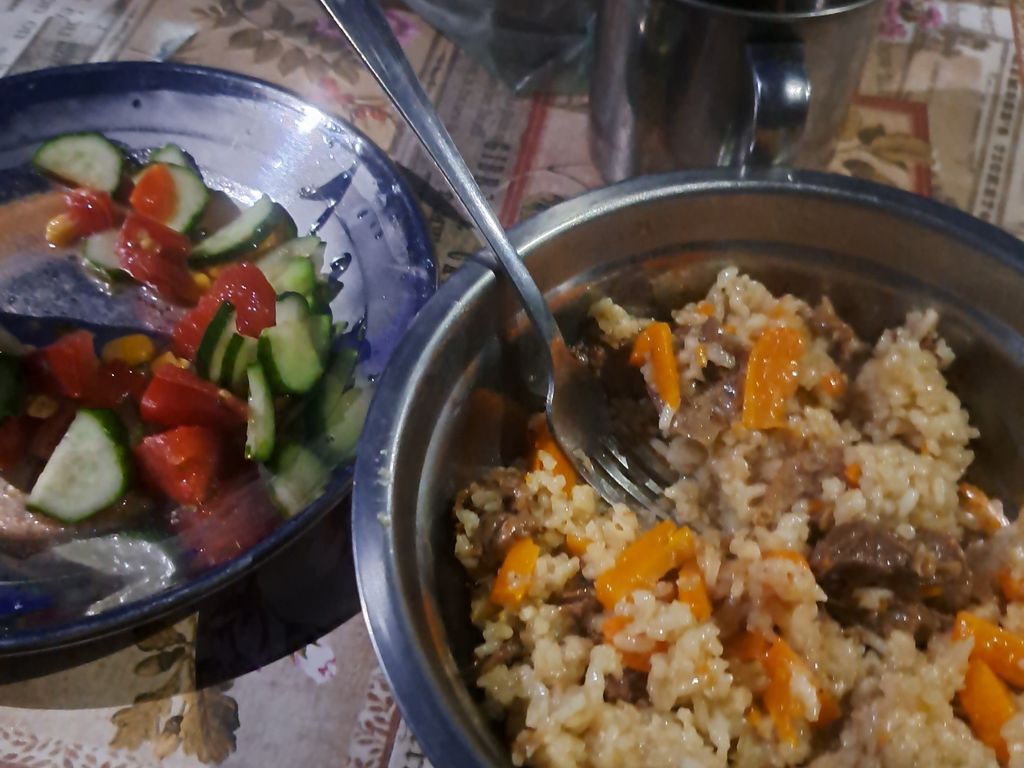 Ce soir repas de seigneur -> plov ouzbek avec sa salade de pochent Image