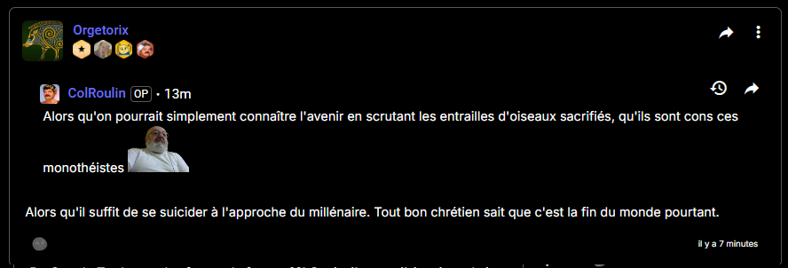 Alors qu'on pourrait simplement connaître l'avenir en scrutant les entrailles d'oiseaux sacrifiés, qu'ils sont cons ces monothéistes