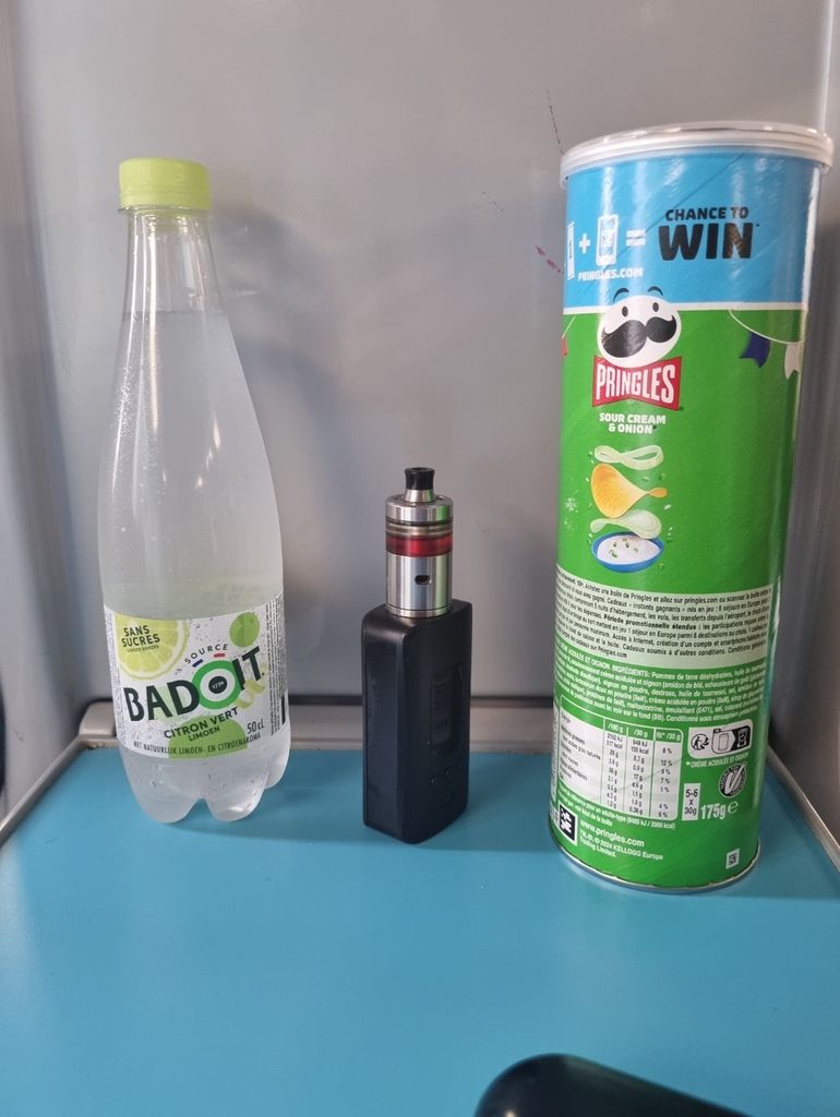 J'ai changé de train je suis maintenant dans un ouigo. J'ai pris une badoit et des pringles à l'oignon après avoir mangé des sandwichs triangle jambon emmental sur un banc devant la gare.
