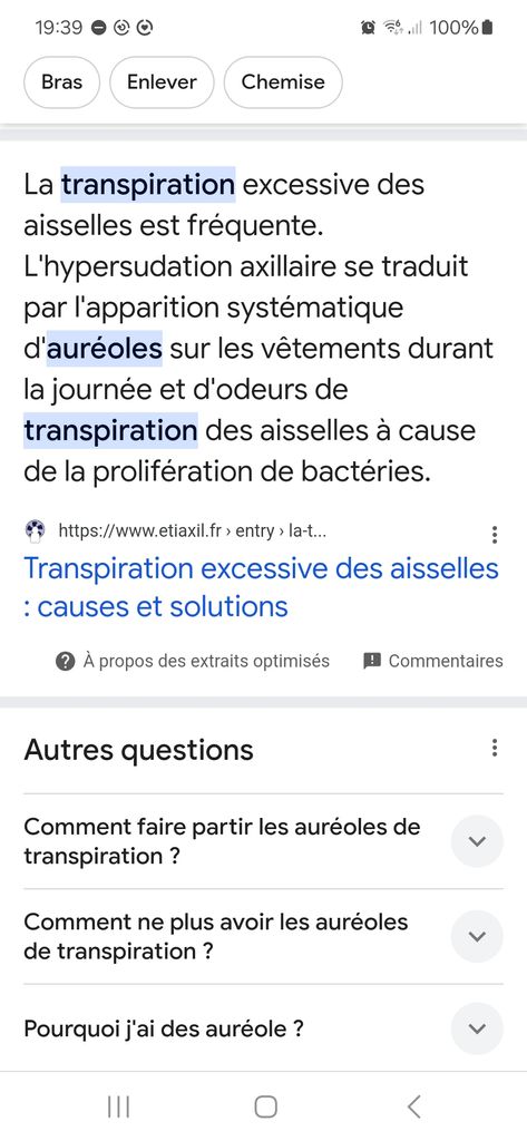 Je voulais dire l'auréole comme un rond de transpiration