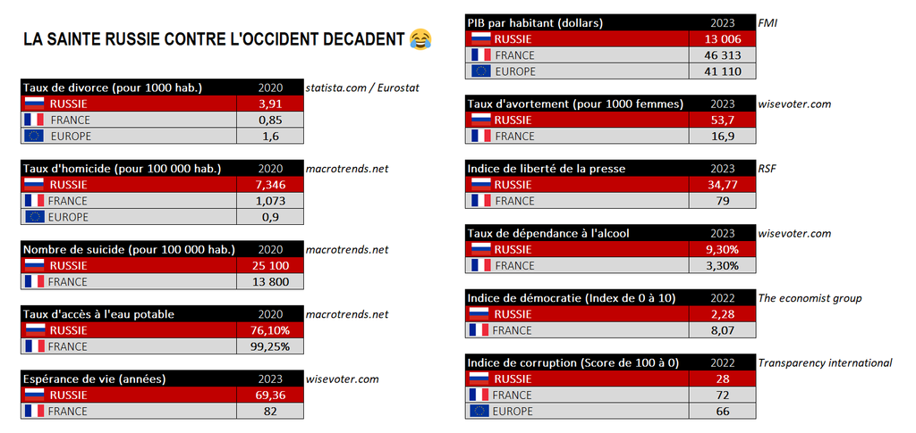 La Russie c'est 90% de campagne de merde, donc évidemment qu'il va y avoir un mauvais accès à l'eau ou une espérance de vie plus faible. Mais aucun expat ne va aller en pleine cambrousse.