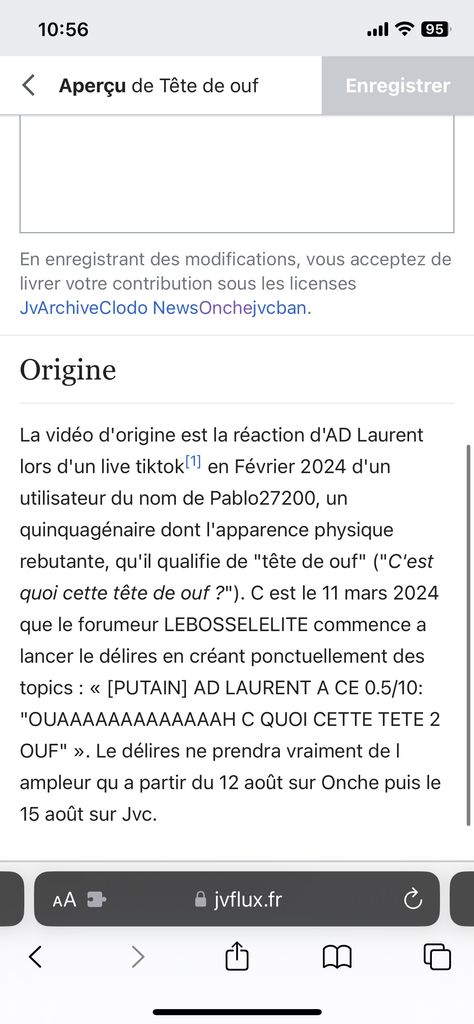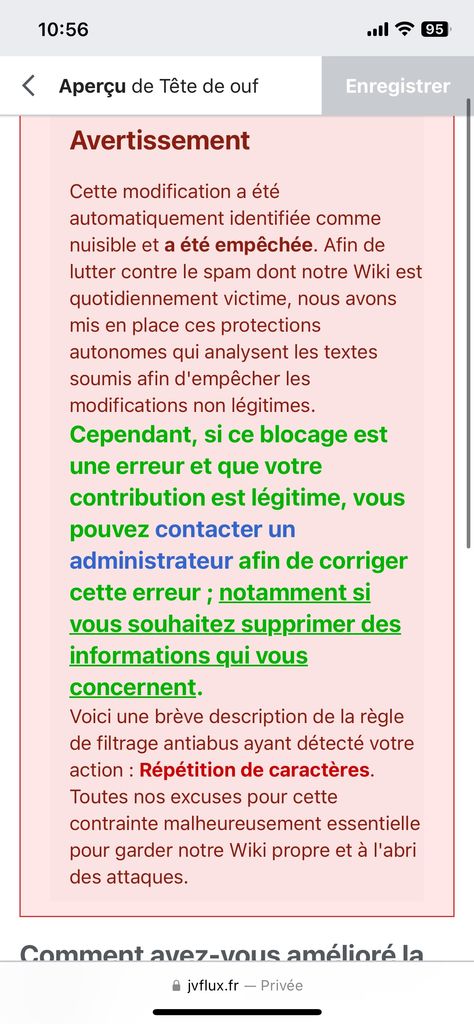 Dans ta modif il y a un OUAAAAAAH etc. donc le wiki a bloqué, c'est pas ta faute en soi