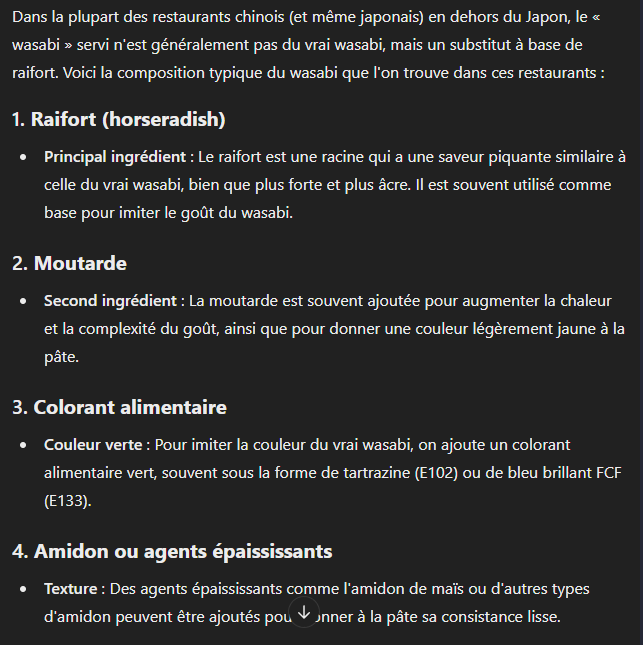 My bad, je viens de vérifier, le véritable wasabi (eutrema japonicum ou rose trémière des montagnes) est de la FAMILLE du raifort et de la moutarde, nuance.