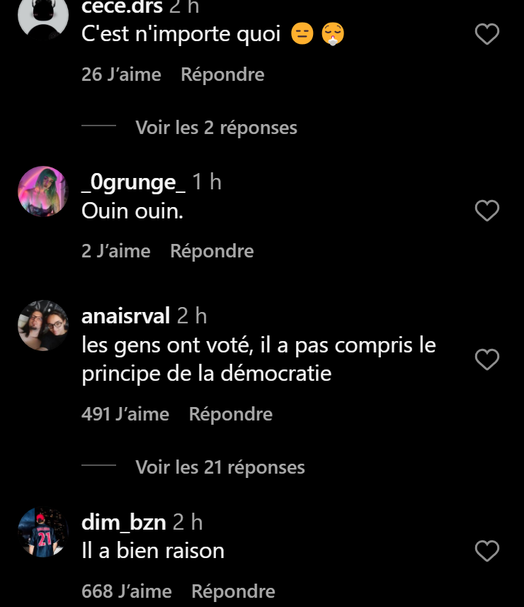 Faites des screenshots des commentaires, on n'a pas tous un compte insta