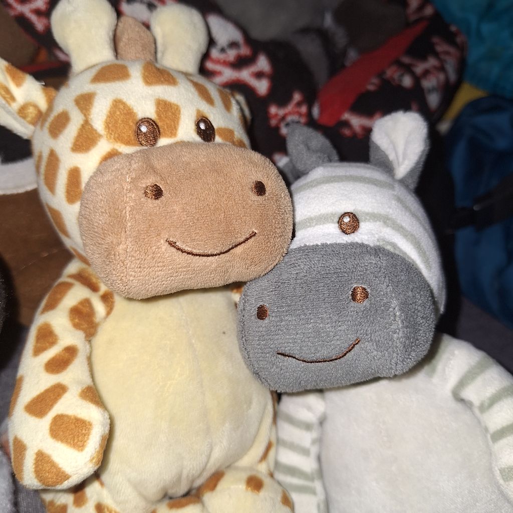 [PHOTO Ma peluche girafa fait un câlin à zebra