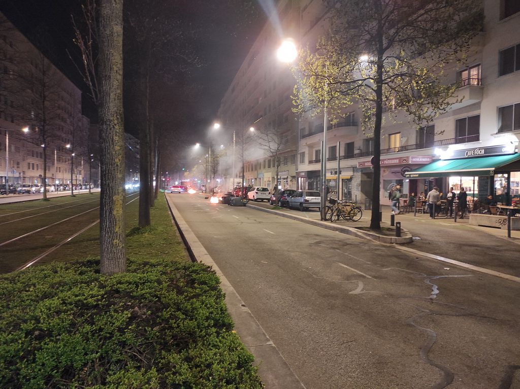 Grosse manif sauvage à l'instant. Poubelles incendiées, feux en pleins boulevards avec les voitures qui passent à 3cm, gazages à volonté, colonnes de CRS sur les grands boulevards.