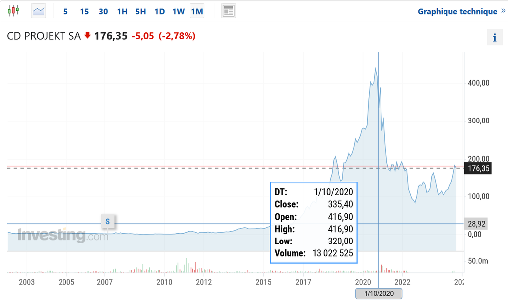 Ça, c'est l'action de CDPR en 2020 juste avant la sortie