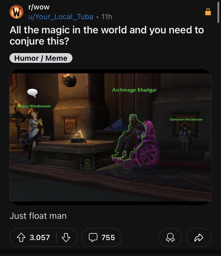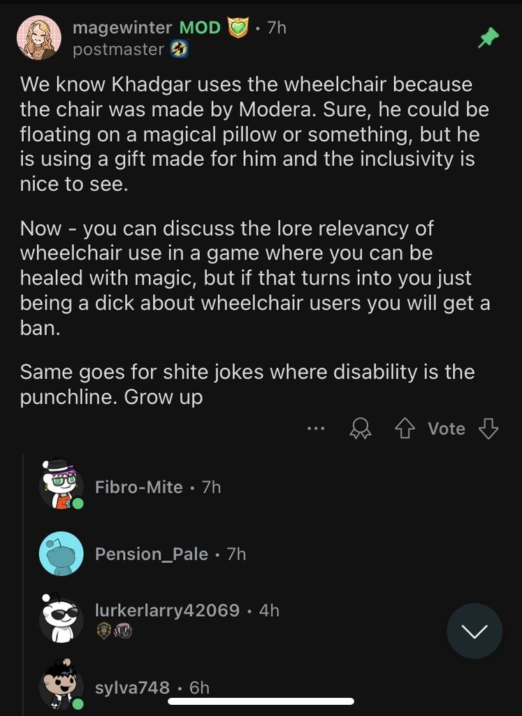Des mages en chaise roulantes et quiconque blague là-dessus se fait ban