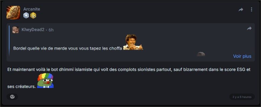 Par contre, hurlé au wokisme, c'est être contre le sioniste et la mafia juive.
