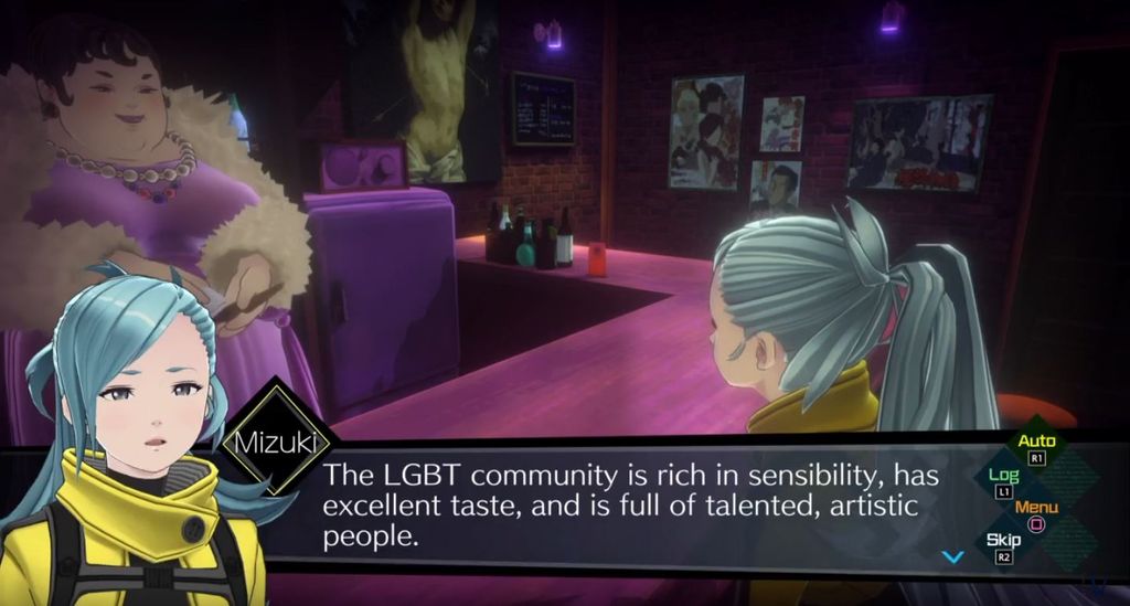 Je ne crois pas que leur jeu soit principalement une parodie des US pour CDProjeckt, étant donné qu'ils sont relativement sérieux aux sujets des personnes trans. Dans mes souvenirs, je crois qu'il y avait un personnage trans, le barman ou barmaid dans l'Afterlife où t'avais des séries de courses à gagner avec elle (lui). De plus, le drapeau trans est d'ailleurs présent sur le pick-up de ce même personnage.
