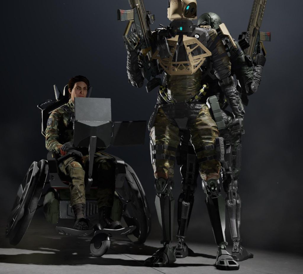 Là il sont mis une femme marine handicapée des jambes (même si ses jambes ont l'air très musclés) qui ressemble à un homme donc peut-être non-binaire et qui contrôle 2 robots.