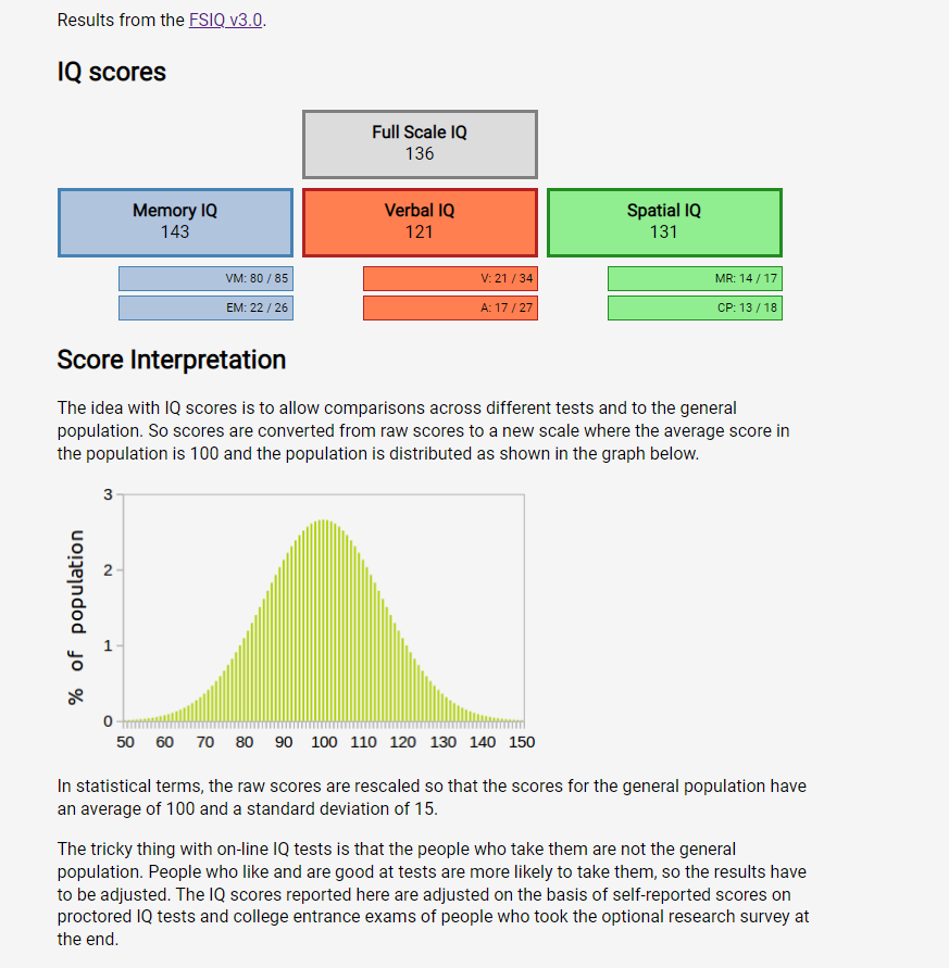 Au départ les notations des tests psychométrique se faisaient par paliers (90, 100, 130, 145 ) mais certains américains rageaient trop d'être considérés comme aussi intelligents que leurs voisins donc ont décidé de rendre ça précis bien que très arbitraires juste pour pouvoir flex du fait qu'ils aient 120 alors que machin a 105 afin d'assoir leur mépris et complexe de supériorité.
