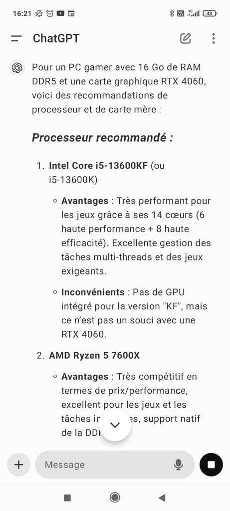 Moi aujourd'hui à la limite je te recommanderais un processeur AMD même, si je devais changer là maintenant c'est ça que je prendrais, mais j'ai un i9-12900KF donc bon je vais le garder quelques temps
