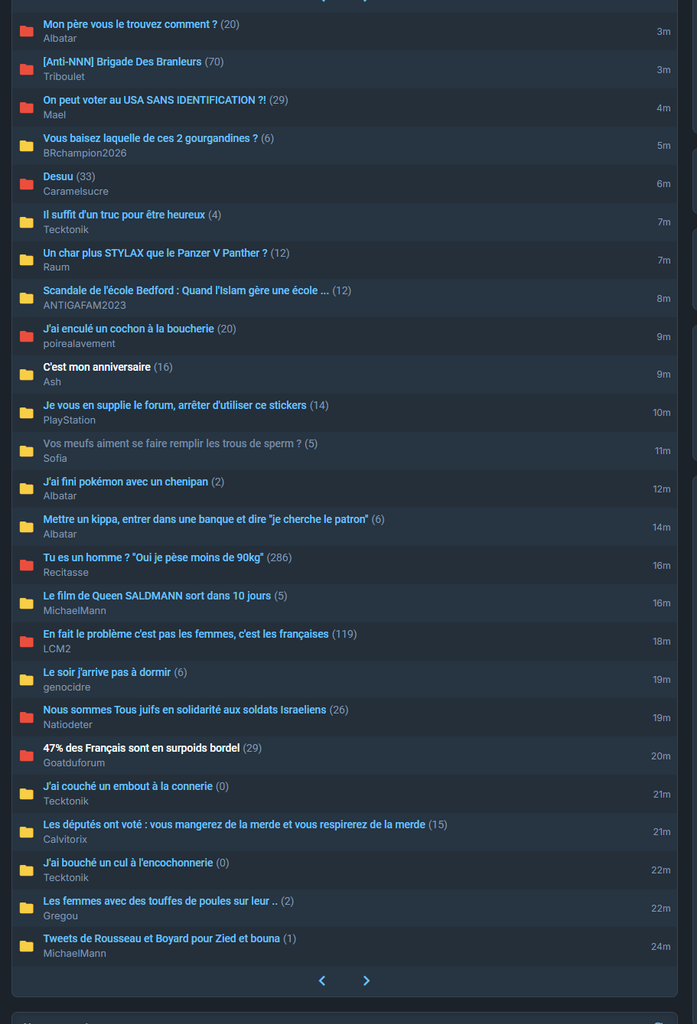 page 1, 0 topic sexuel ou méprisant envers les femmes / page 2, 2 topics / page 3, 4 topics / page 4, 3 topics