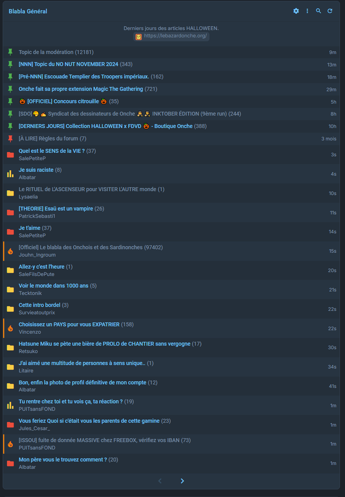 "vous sortez jamais de votre blabla" alors que beaucoup participe a la vie du forom comme Jouhn par exemple