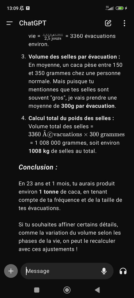 je me fierais pas trop à chat gpt pour les calculs ( ceux ci sont possiblement bon hein j'ai pas vérifié) car quand je lui demande de faire mes devoirs il me sort des formules, unités et résultats complètement démentiels