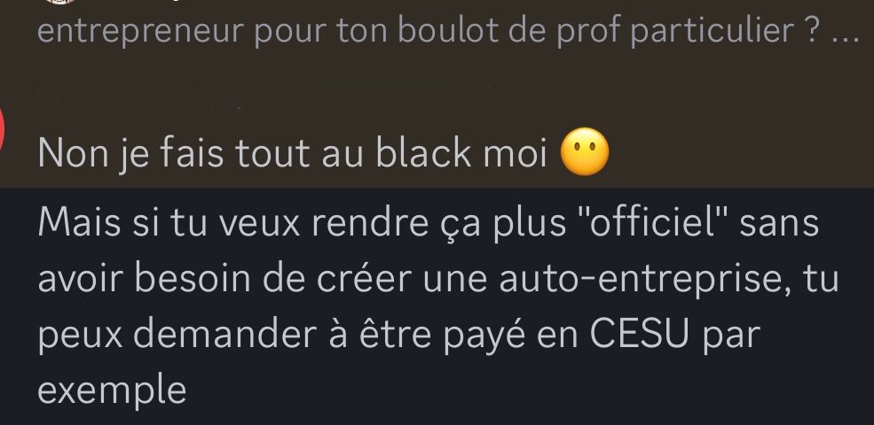 Sinon CESU si tu ne veux peux faire les démarches micro entreprise