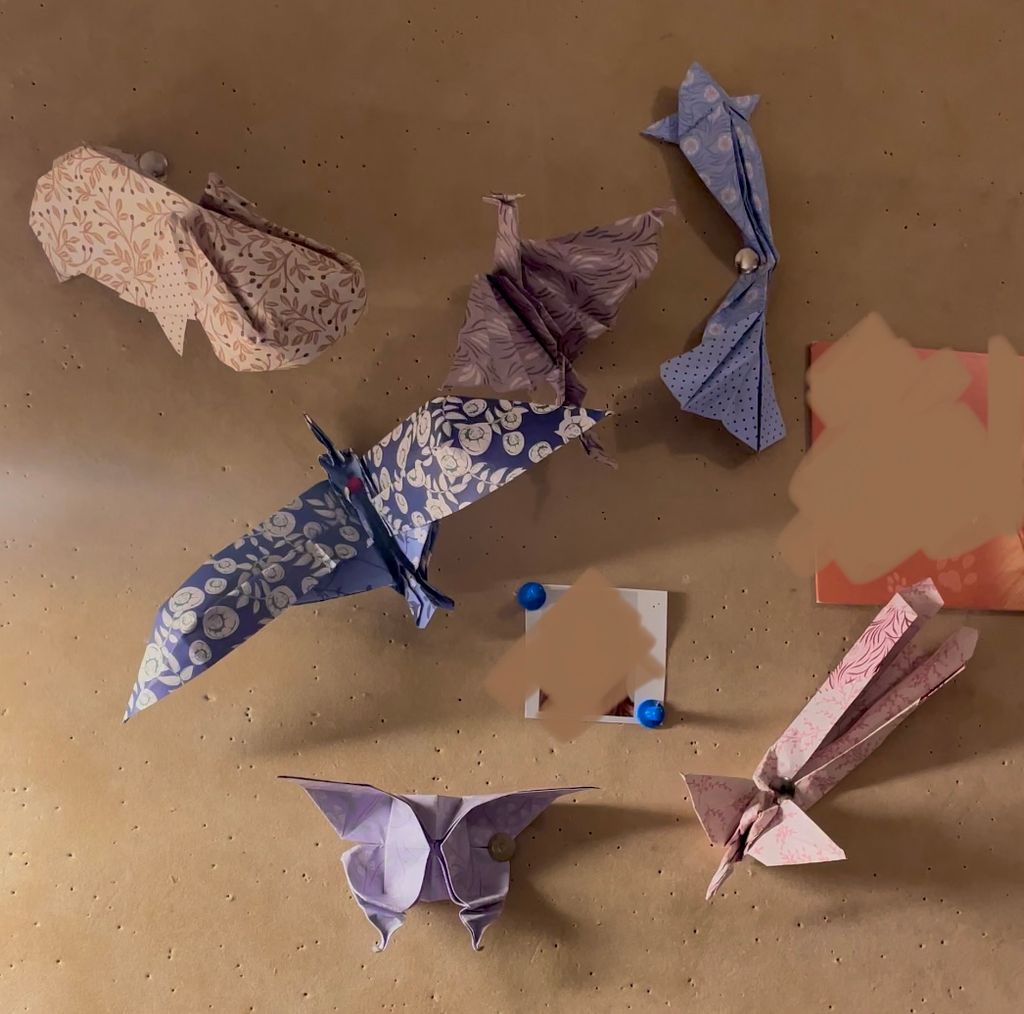 Je les aies accrochés sur le tableau en liège au dessus de mon bureau, ça rend bien on dirait un petit monde qui prend vie