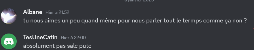Ah mais tkt il suis le topic à la page près, il m'a envoyé encore 5-6 messages
