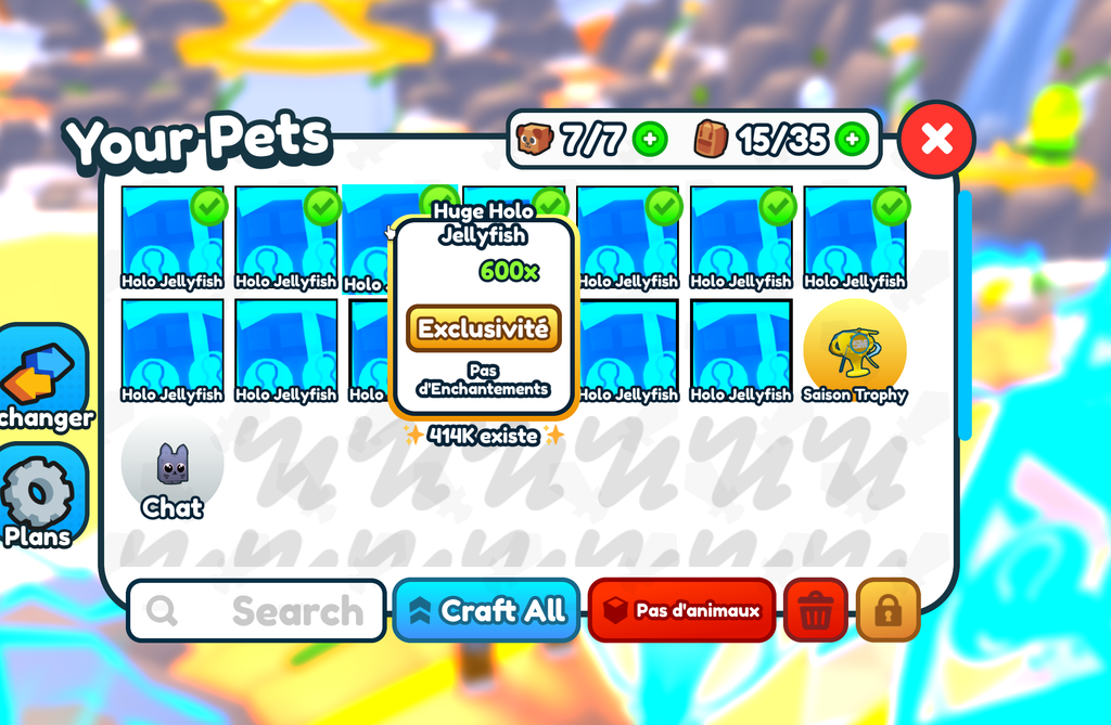 voilà ça c'est mes animaux qui augmentent de 600 mon mewing, j'en ai plein d'autre en stock et j'ai suffisamment d'argent dans le jeu pour faire tourner 1000 fois la caisse a animaux la plus cher, y a juste un animal qui a un boost de x1000 (et sans amélioration) mais le taux de drop est de 1/100 000 et vu ça prend du temps a se casser les oeufs a animaux j'ai un peu la flemme je préfère garder ma thune pour quand les dév mettront un nouveau niveau