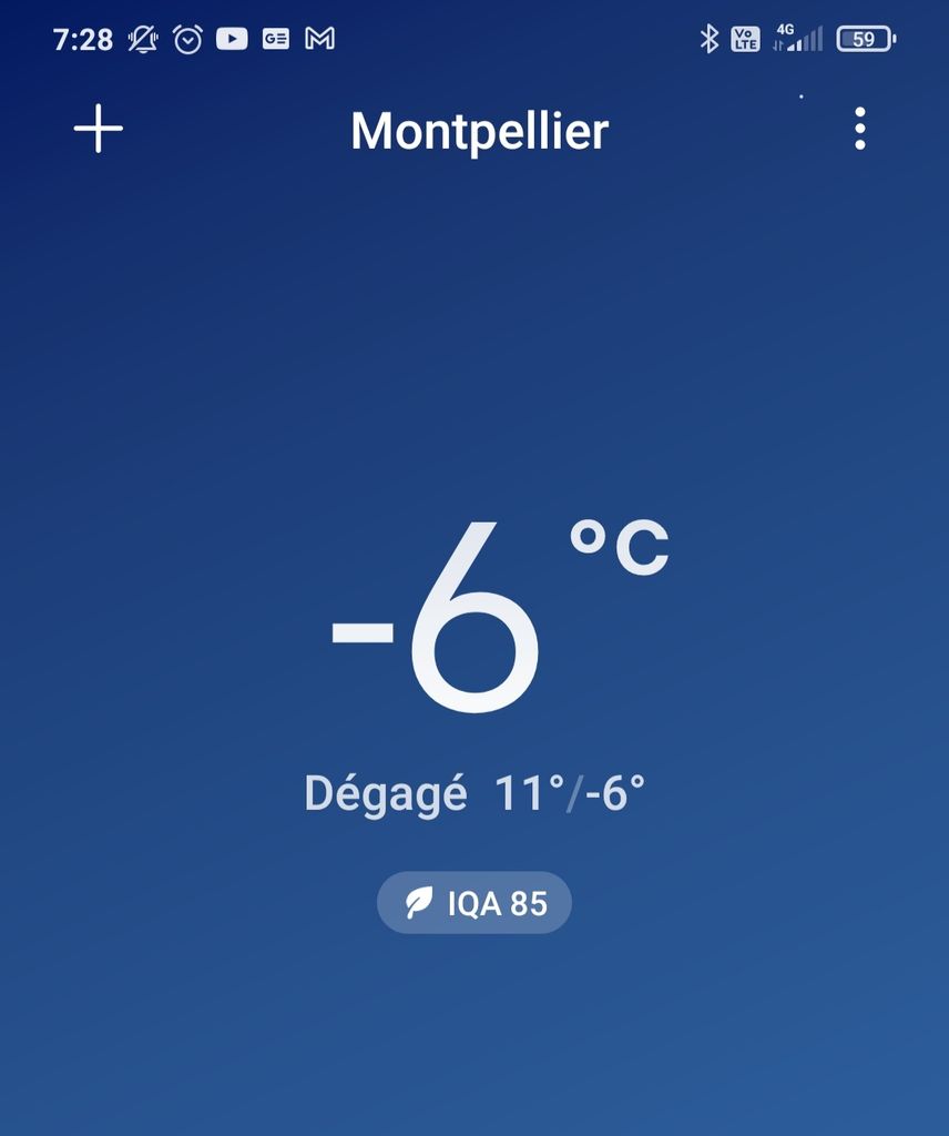 Je me souviens pas la dernière fois que j ai eu -6 à 8h du matin à mtp