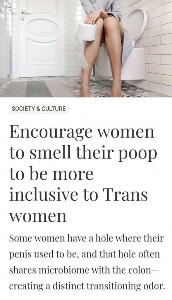 Si mais c'est pcq le "vagin" des "femmes" trans sentent la merde, donc l'idée c'est de faire en sorte que les femmes normales respirent l'odeur de leur propre merde pour s'habituer à l'odeur des "femmes" trans