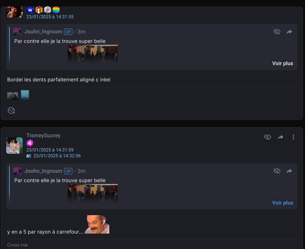 J'sais pas mais je me méfie facilement des gens c'est tout... Puis je trouve insupportable cette façon de se mettre en scène en mode "hi hi j'suis trop frais tavu" je trouve ça juste inauthentique comme ceux et celles qui font du virtue signaling sur les réseaux