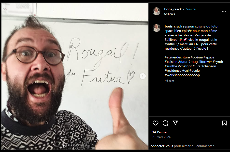 Boris crack le techno-blagueur qui vit d'ateliers d'écriture, de publication de shitpost, de musique lo-fi et des financements du cnl quand toi tu vends ton âme dans ton boulot du tertiaire pour payer ton loyer